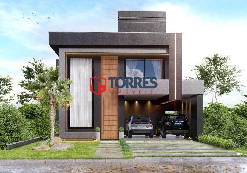 O pavimento térreo conta com hall de entrada com pé direito duplo, lavabo, sala de estar com lareira, sala de jantar, cozinha integrada e grande área envidraçada com vista para mata nativa. Garagem coberta para dois automóveis com acesso lateral para maior comodidade ao abastecer a residência com suas compras.